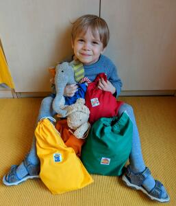 Nicht nur Alwin freut sich über die neuen Schlafbeutel in den fünf Gruppenfarben vom evangelischem Kindergarten.